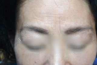翌10月11日。下眼瞼および内眼角部の皮下出血斑が著しく消失。内DiathermyとHSPの効果が著明